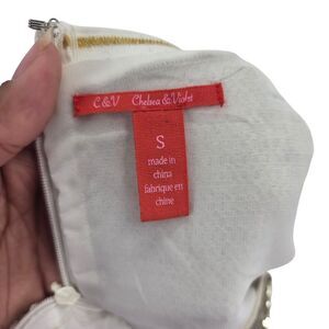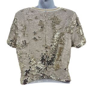 Dazzle in this chic gold and cream reverseable sequin crop top. Perfect for adding sparkle to any outfit.