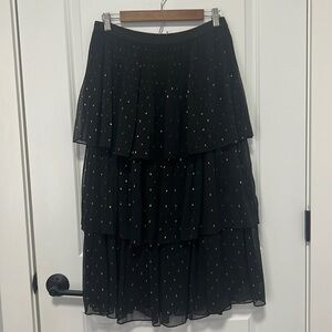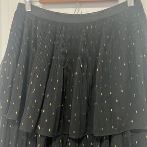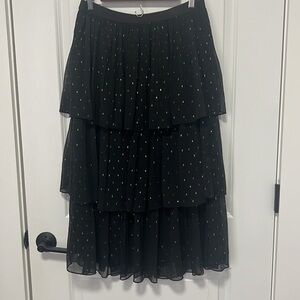 Chelsea & Violet Gold-flecked Black pleated Tiered Midi skirt Elastic waistband size Medium