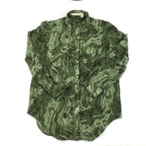Chelsea & Violet Green Watercolor Swirl Semi Sheer Tunic Blouse Womens Medium
