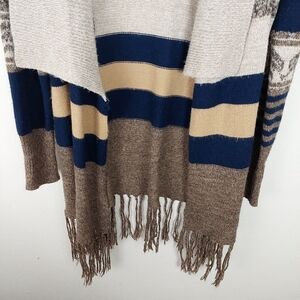 Chelsea & Violet Long Open Front Mixed Print Cardigan Sweater Taupe Beige Sz M.