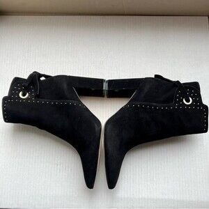 CHELSEA & VIOLET Miley Black Suede Block Heel Ankle Boots w/ Gold Rivets, Side Zipper & Tie on Back of Boots. Women’s Size 8.5. Some scuffs/marks on the heels more so on the inside portion as shown in photos, but otherwise in good condition. Please consider bundling for the best deal. Thank you for shopping.