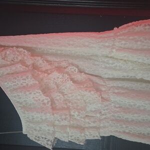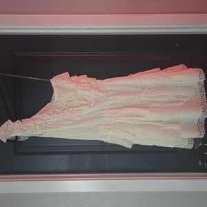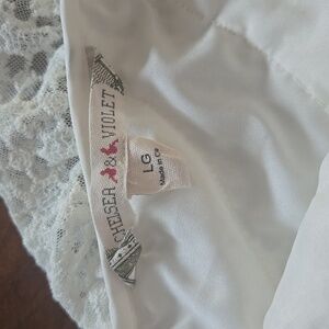 Chelsea & Violet white tiered floral lace one shoulder fit and flare mini dress. Size large. Elastic at waist. Material has very little stretch. Excellent pre-owned condition. No flaws. This so cute and flattering on! It's a bit too big on the bust for me and would probably fit a size 12 best (I'm a size 10, 36DD for reference). Cute for graduation, bridal events, cocktail dress, casual wear, or for a concert with cowboy boots.