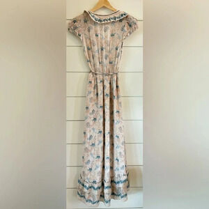 Chelsea & Violet Plisse Ruffle Deep V-Neck Long Smocked Tiered Maxi Dress