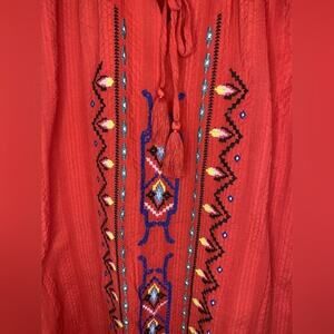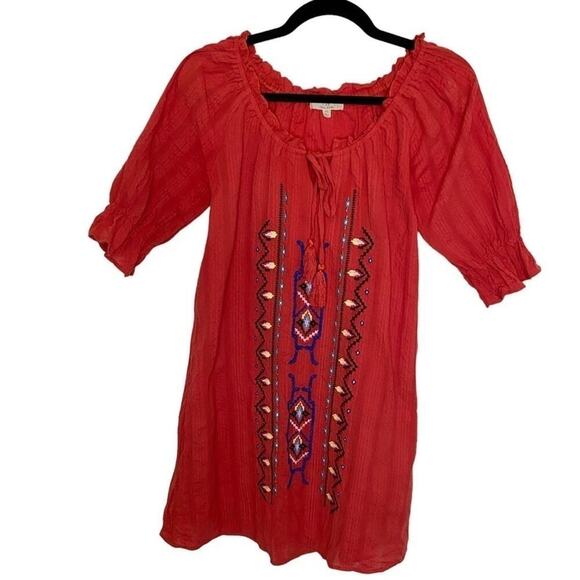 Chelsea & Violet Red Embroidered Tassle Shift Mini Dress Half Ruffle Sleeve XS