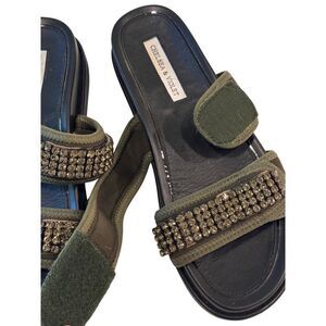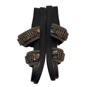 ✨ Chelsea & Violet Rhinestone Embellished Camo Velcro Slide Sandals ✨ Size: 7.5
