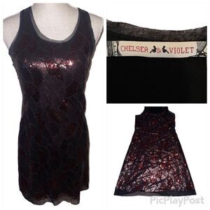 Chelsea & Violet Sequin Detail Mini Cocktail Dress; size XS. Great gently used condition. Netted trim. Gorgeous rust colored sequins. Beautiful design when the light hits it. See video.