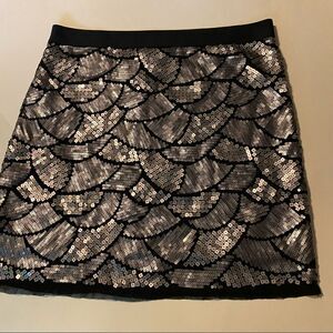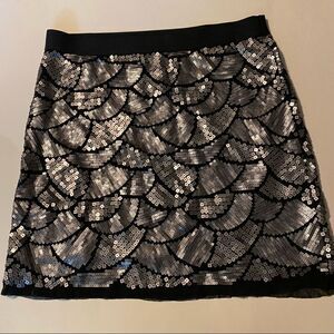 Chelsea & Violet Silver Sequin metalic scallop mermaid NYE Mini Skirt black XS