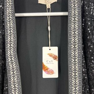 Chelsea & Violet Size Medium Sequin Long Open Front Cardigan Duster Kimono NWT