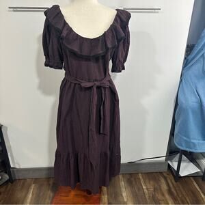 Chelsea & Violet Size XL Purple Elegant Belted Ruffle Midi Dress Emo Country
