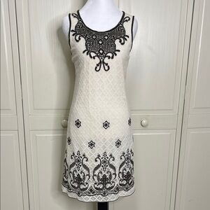 Chelsea & Violet Womens Short Black & Cream Lace Embroidered Dress Size Small