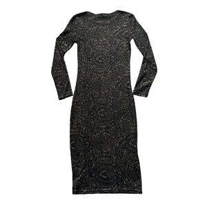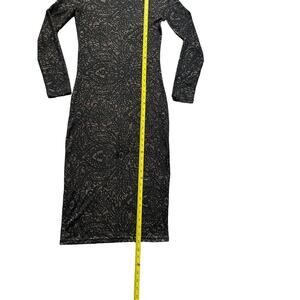 Chelsea & Violet Black Maxi Bodycon Paisley Dress Long Sleeve. Has a Gold Base and Black Embroidery type stitching all over dress.