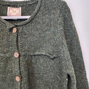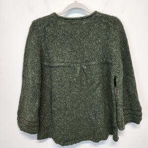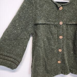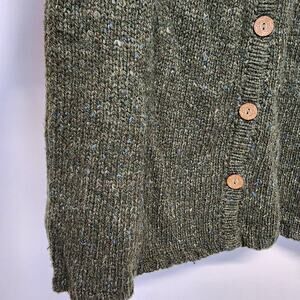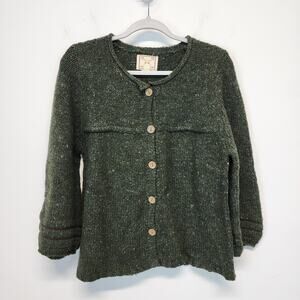 Chelsea & Violet Wool Cardigan Sweater Size L Green Wood Buttons Balloon Sleeve
