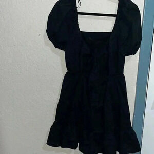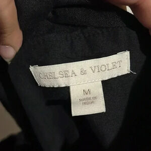 Chelsea & Violet Dress Women Medium Black Tiered Mid Puff Sleeves Bow Back linen dress offers are welcome