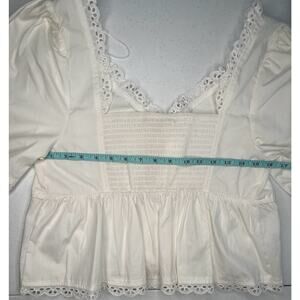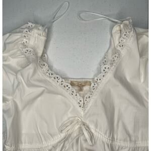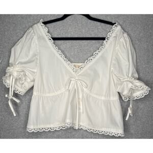 Chelsea & Violet women's white eyelet blouse short sleeve crop top v-neck M NWT