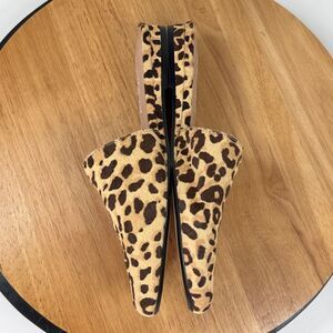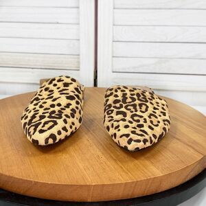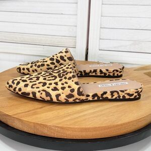 Chelsea & Violet Eve Calf Hair Fur Leopard Print Slide Mules Shoes Tan 7.5
