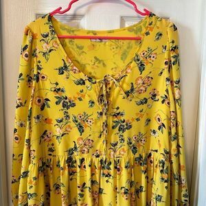 Chelsea & Violet Floral long sleeve Babydoll Dress yellow medium