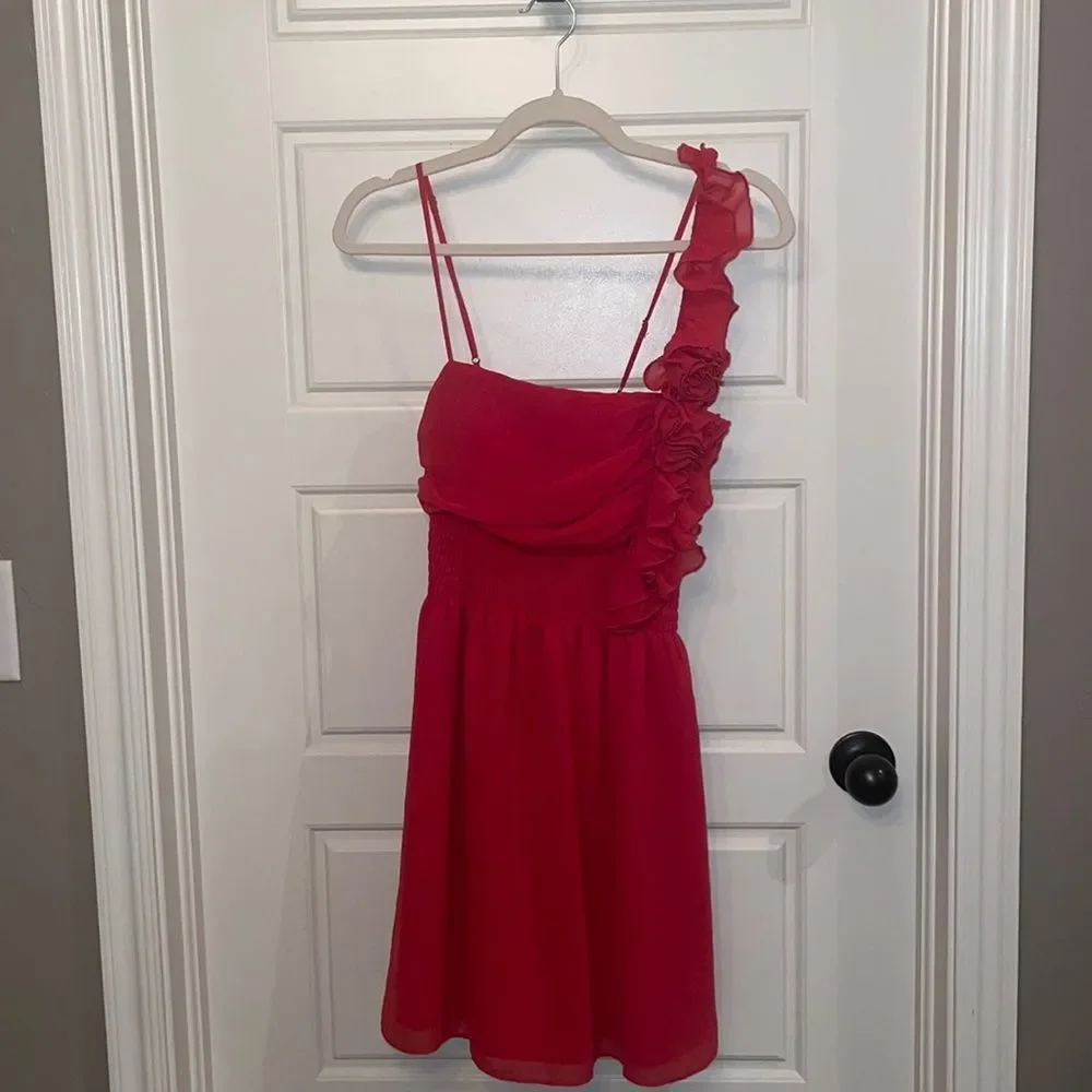 Chelsea & Violet Red Ruffle Ruched Dress