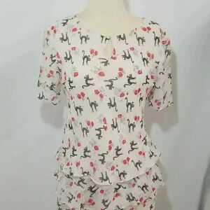 {Chelsea & Violet} SET: Red Roses With Black Cats Print Top and Skirt