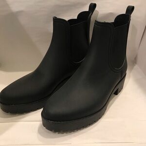 A Chelsea rain boot cut from faux leather is lifted by a platform and lugged sole so you can take on wet weather in confident style.