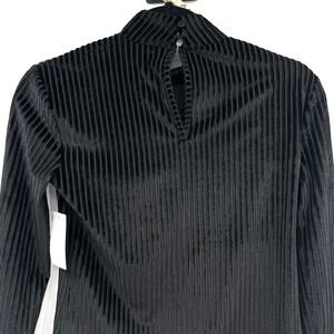 Chelsea Womens Black Velvet Corduroy Buttoned Mock Neck Top