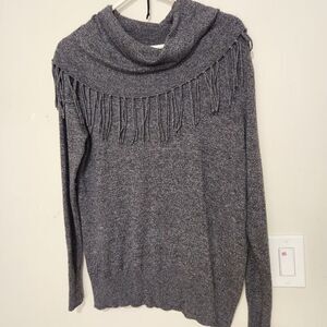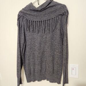 Chelsea and Theodore Blouse Women XL Gray Charcoal Fringed Cowl Neck Wool Blend