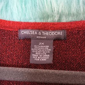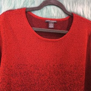 Chelsea and Theodore Red and Black Sparkly Long Half Sleeve Top Size 2X