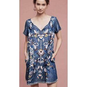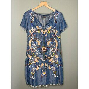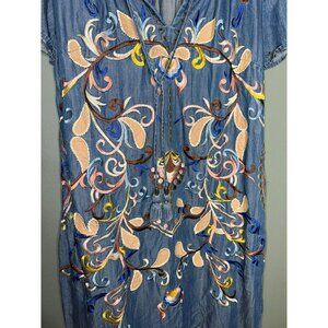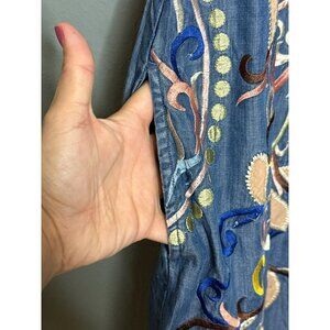 Chelsea and Theodore Women's Small Embroidered Tencel Denim Holding Horses Folklore Dress