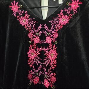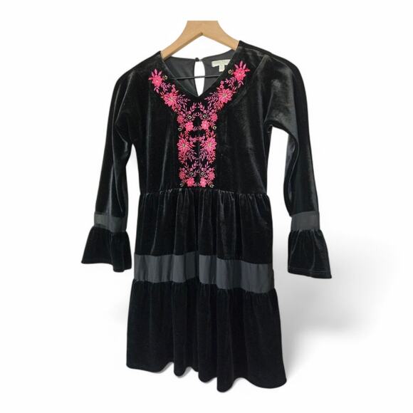 Chelsea and Violet Black Velvet Floral Embroidered Dress Size Medium Girls