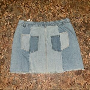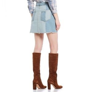 Chelsea and Violet Colorblock Patchwork Jean Skirt Blue Denim Raw Hem Size 31