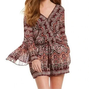 Chelsea and Violet boho wine and roses floral surplus wrap romper