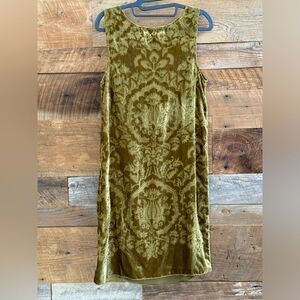 Chelsea and Violet tone on tone Olive velvet flocked fully lined dress EUC SZ M