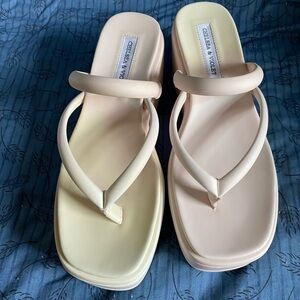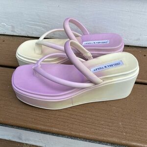 Chelsea and Violet Benni Iuv reactive platform sandals. Pale pink and yellow indoors, Violet and bold yellow outdoors. Sample sandals, only try on wear. Size 6