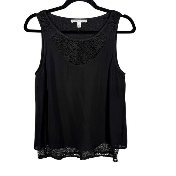 Chelsea and Walker Size 4 Black Lace Layered Silk Sleeveless Blouse Top Pieced
