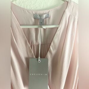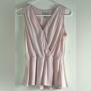NWT Chelsea28 sleeveless peplum light pink top. Effortless and casual-cool, this faux wrap top has an easy fit with its surplice neckline and always flattering peplum. Pullover style with snap closure.
