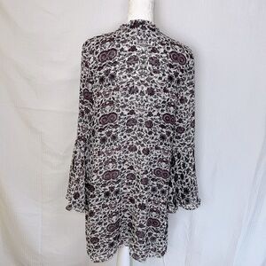 Chelsea28 Bell Sleeve Floral Split Tie Neck Sheer Dress Cover-Up - Size Small