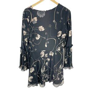 Chelsea28 Black Floral Bell Sleeve Dress Sz M V-neck Fit & Flare Zip Back
