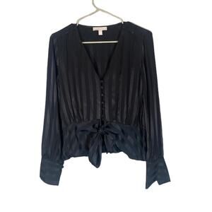Chelsea28 Black Striped Twist Knot Button Up Formal Blouse Women Sz S