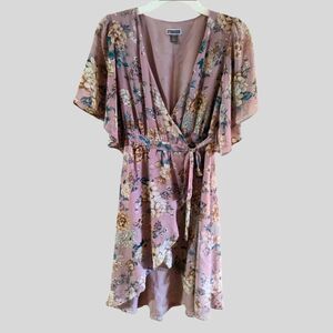 Chelsea28 Chiffon Wrap Dress Womens Size XXS Purple Floral High-Low Boho Wedding