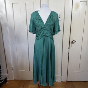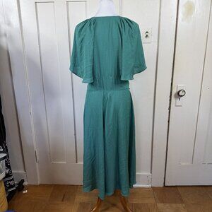 Chelsea28 Dress L Large Dark Green Short Flutter Sleeve Midi Festive Party