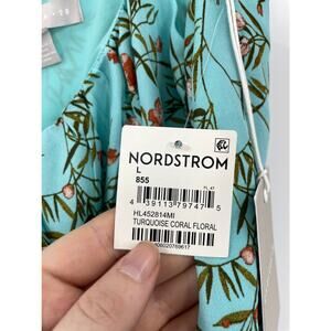 Chelsea28 Womens Size Large Dress Sleeveless Gathered Ruffle Turquoise Coral Floral. New with Tag.