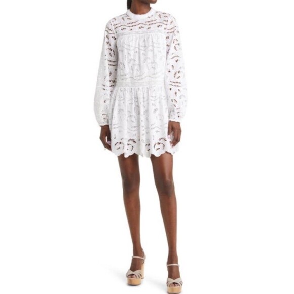 Chelsea28 Embroidered Minidress Women's Size Small White Eyelet Long Sleeve