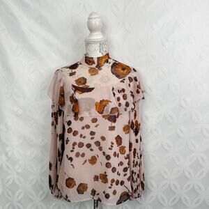Chelsea28 Floral Long Sleeve Mock Neck Sheer Blouse Size M