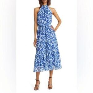 Chelsea28 Floral Print Tiered Halter Neck Maxi dress SZ L NWT