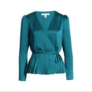 Chelsea28 Green Long Sleeve Pleated Wrap Long Sleeves Blouse Size S New