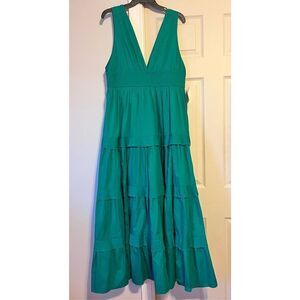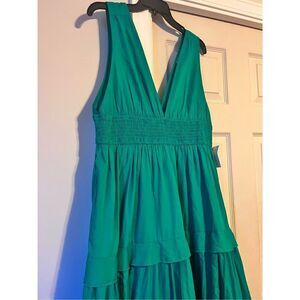 Elegant and fun green maxi dress by Chelsea28. Features a tiered design and deep V-neckline. I’m so upset it didn’t fit me, but my loss is your gain!