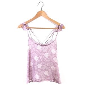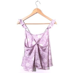 Romantic Chelsea 28 Light Purple Floral Ruffle Satin Tank Top
