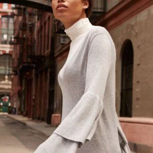 Chelsea28 Maroon Tier Ruffled Sleeve Sweater. A contemporary take on a classic sweater, this lightweight, cashmere-kissed version is framed with ruffled and romantic bell sleeves.