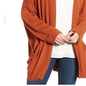 Cuddle up in your own personal soft cloud with this slouchy cashmere-kissed cardigan that can be thrown over all your looks. - 32 1/2" length (size M/L) - No closure - Long sleeves with dropped shoulders - Front pockets - Ribbed trim - Imported