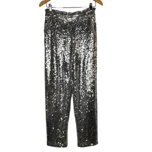 Chelsea28 Pants Sequin Embellished Straight Leg Elastic Waist Silver NWT Small