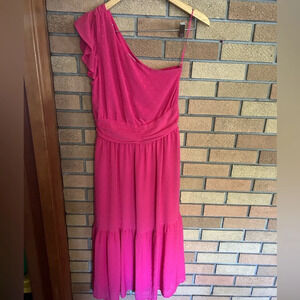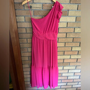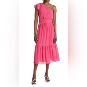 Chelsea28 Pink Polka Dot One Shoulder Flowy Midi Dress Women’s Size Small NWOT